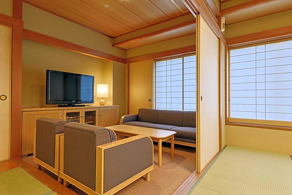 This suite's standout feature is the private open-air bath. This spacious suite is consisted of of 1 living room, 1 separate bedroom and 2 bathrooms with a bath and free toiletries. The air-conditioned suite offers a flat-screen TV with satellite channels, tatami, a seating area, a wardrobe as well as city views. The unit offers 2 beds and 2 futons.
